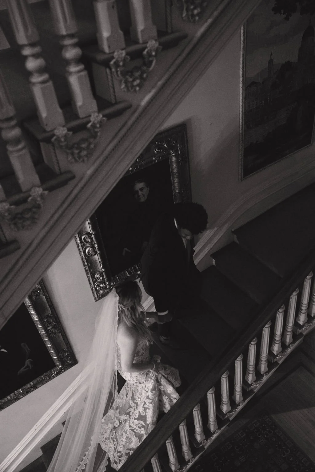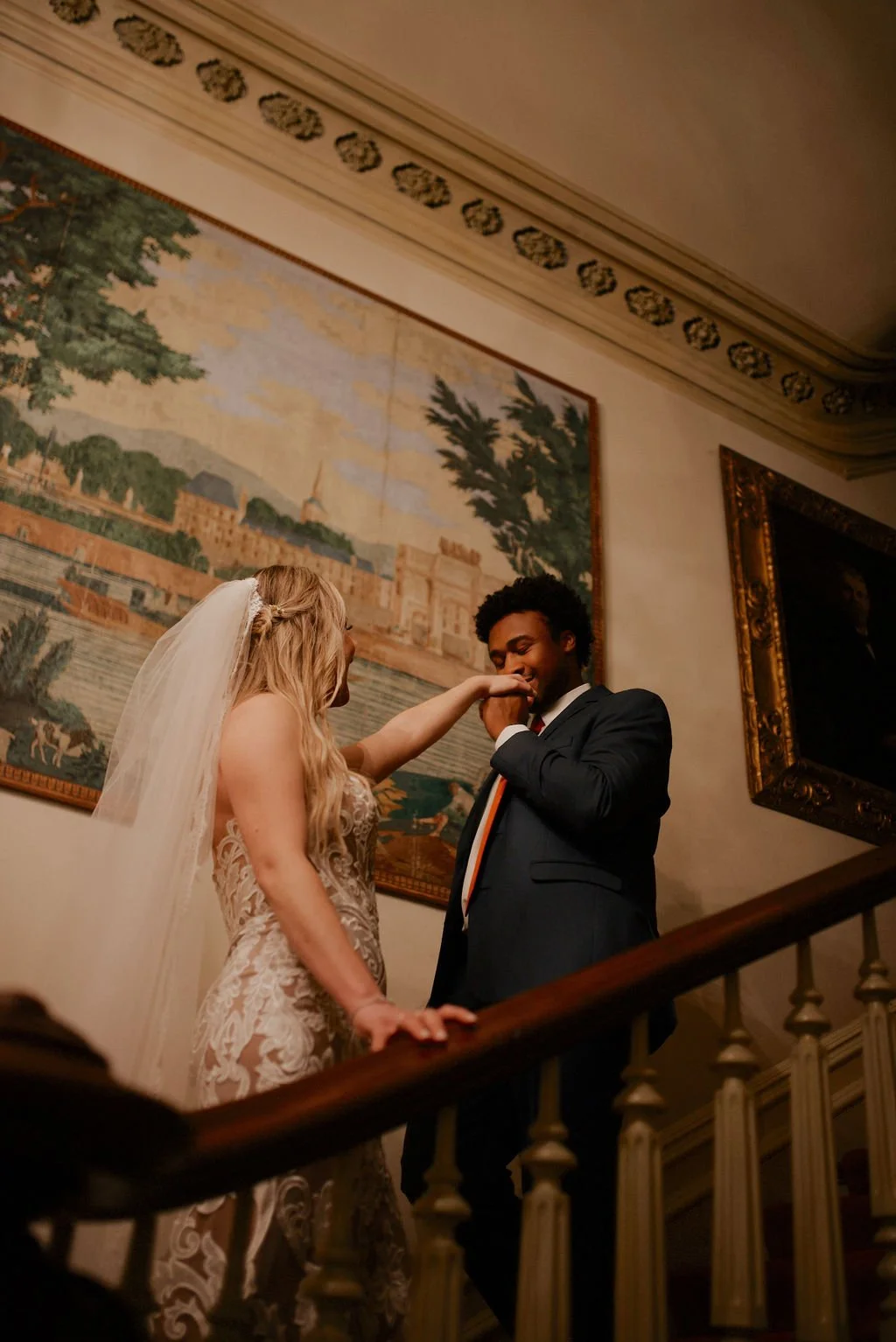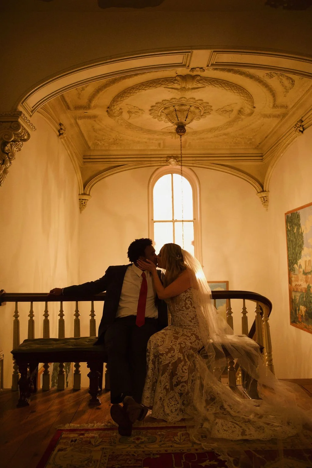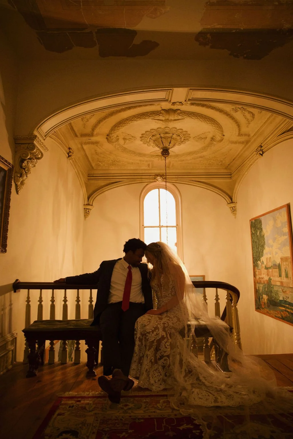 The Woodruff-Fontaine House gave us the most beautiful backdrop — dramatic staircases, ornate chandeliers, and cozy spaces that made the rain feel like part of the story instead of an inconvenience. We even snuck outside between showers for a few portraits, and the wet pavement gave us the prettiest reflections.