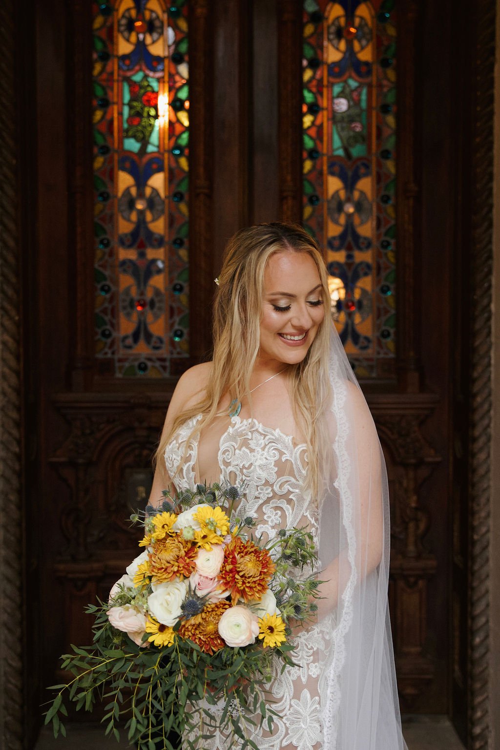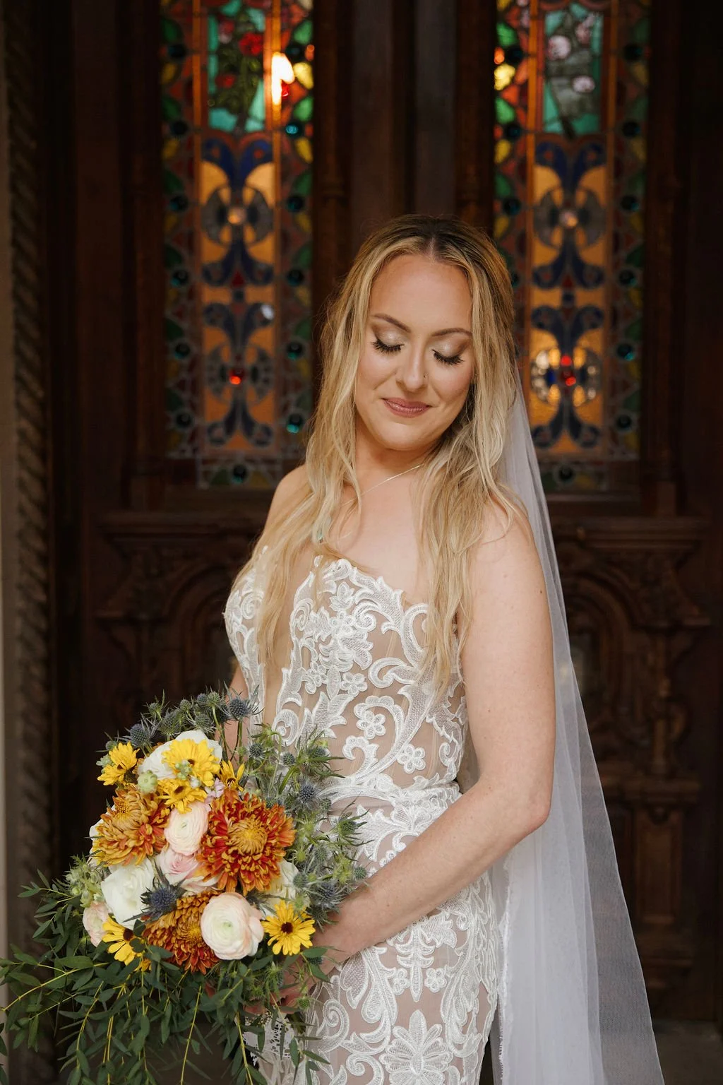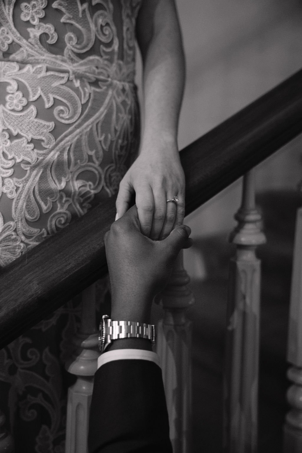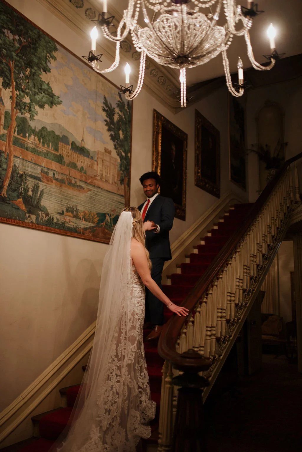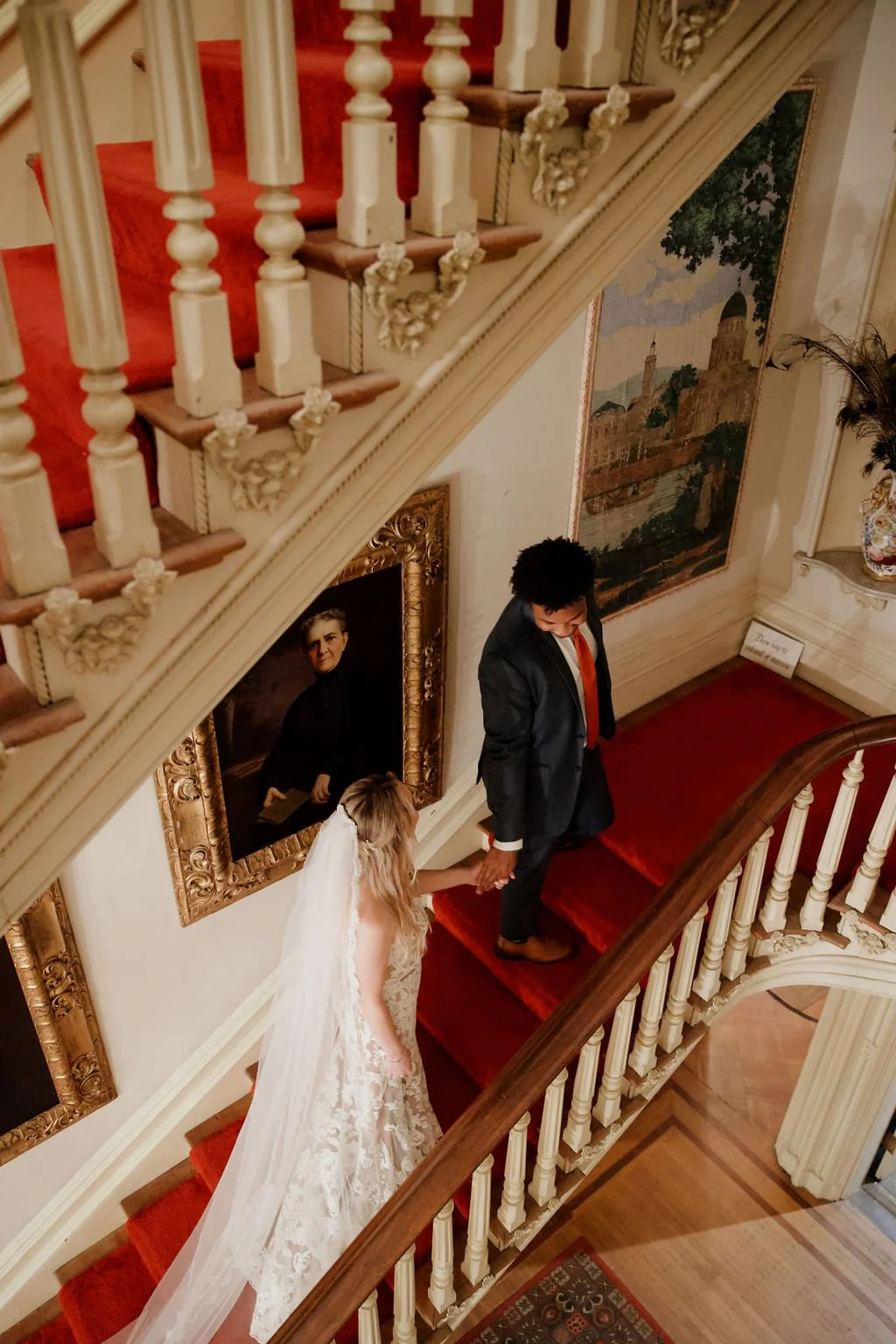 The Woodruff-Fontaine House gave us the most beautiful backdrop — dramatic staircases, ornate chandeliers, and cozy spaces that made the rain feel like part of the story instead of an inconvenience. We even snuck outside between showers for a few portraits, and the wet pavement gave us the prettiest reflections.