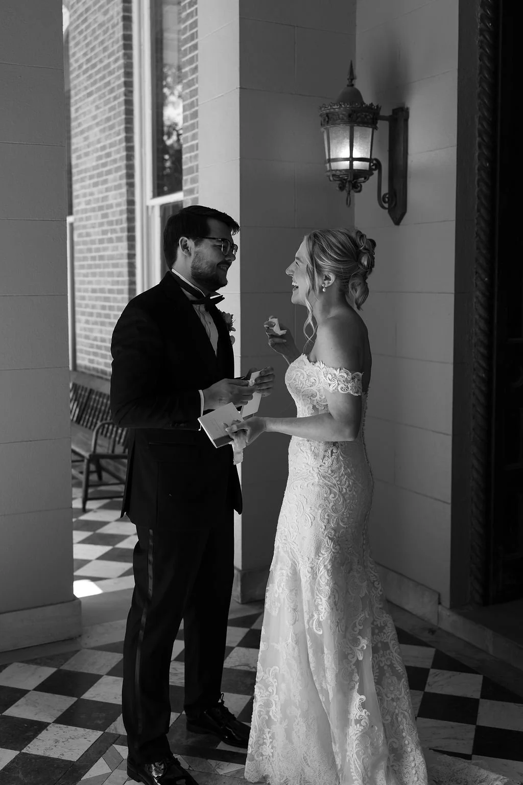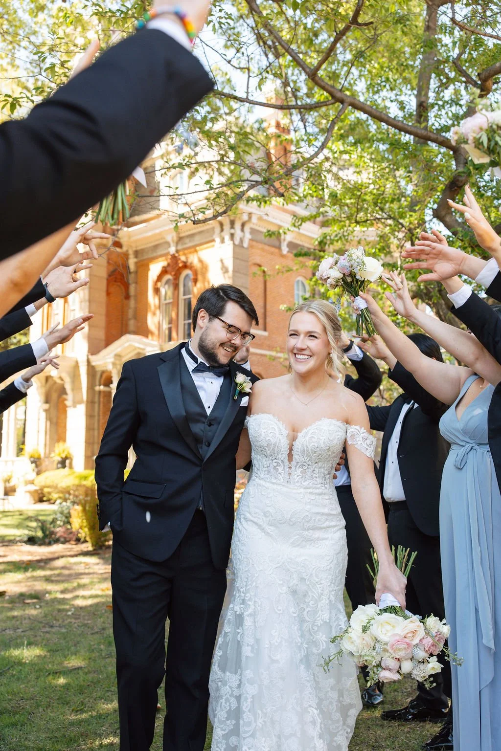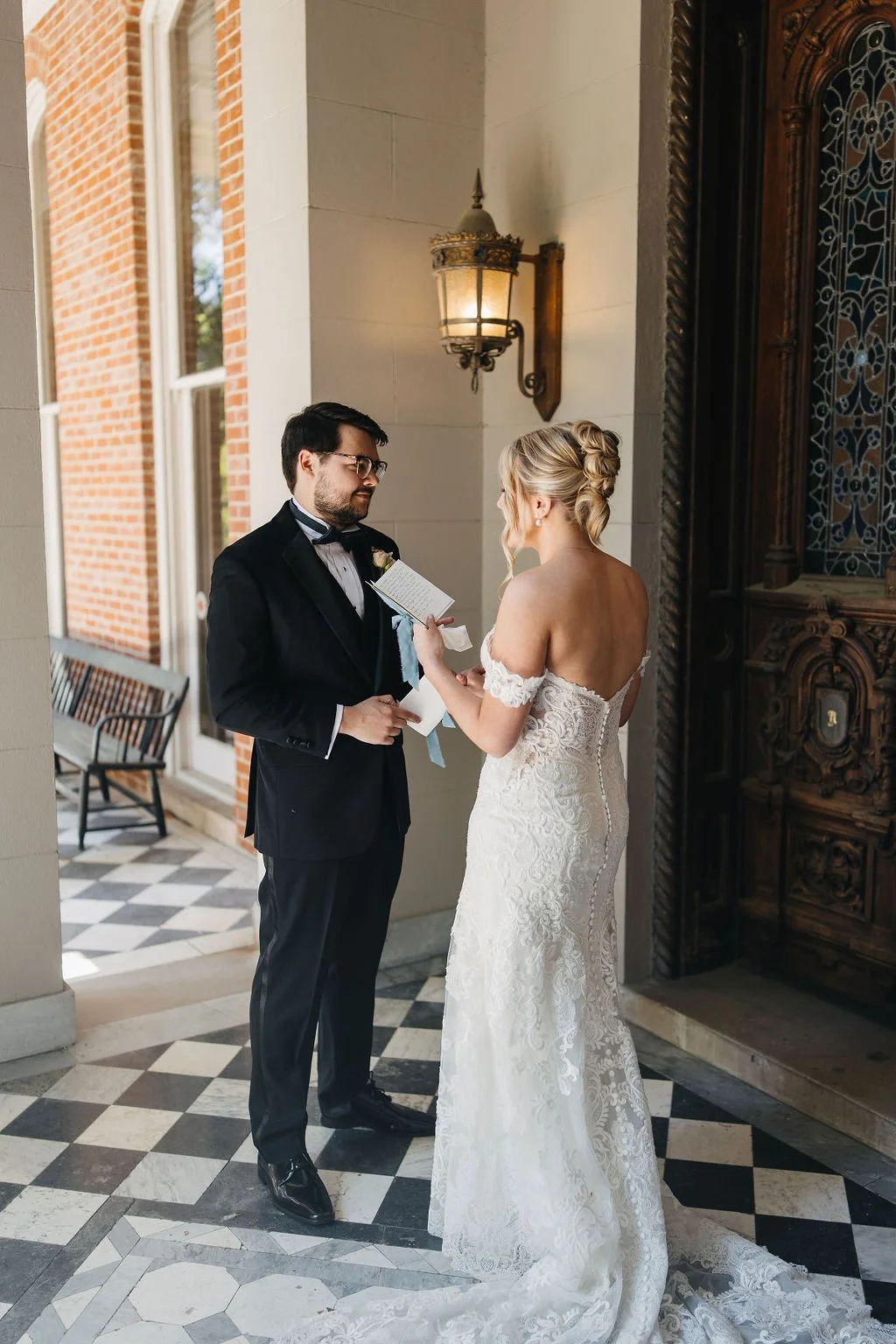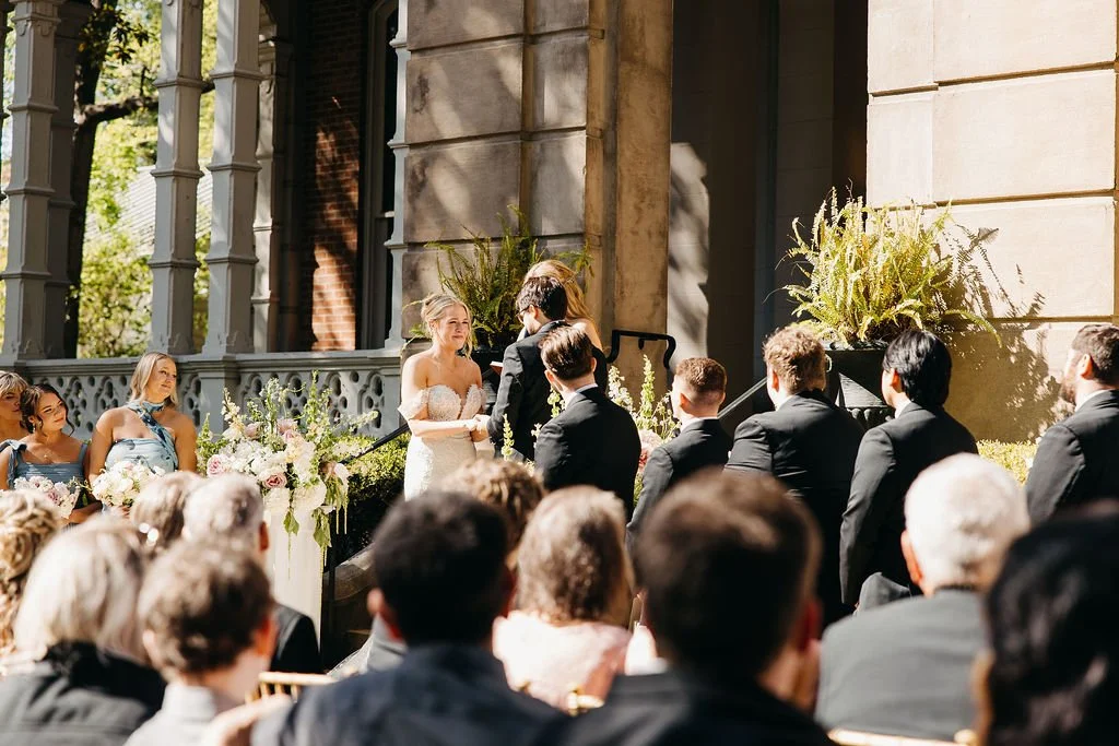 Nicole and Dalton shared a private first look of their own, a tender and quiet moment that let them soak it all in together before the whirlwind of the day continued. Their outdoor ceremony on the lawn felt peaceful and timeless, with the grand house as the backdrop and the trees swaying gently in the breeze. Their vows were heartfelt, and you could feel how connected they were as they said “I do” surrounded by their closest family and friends.