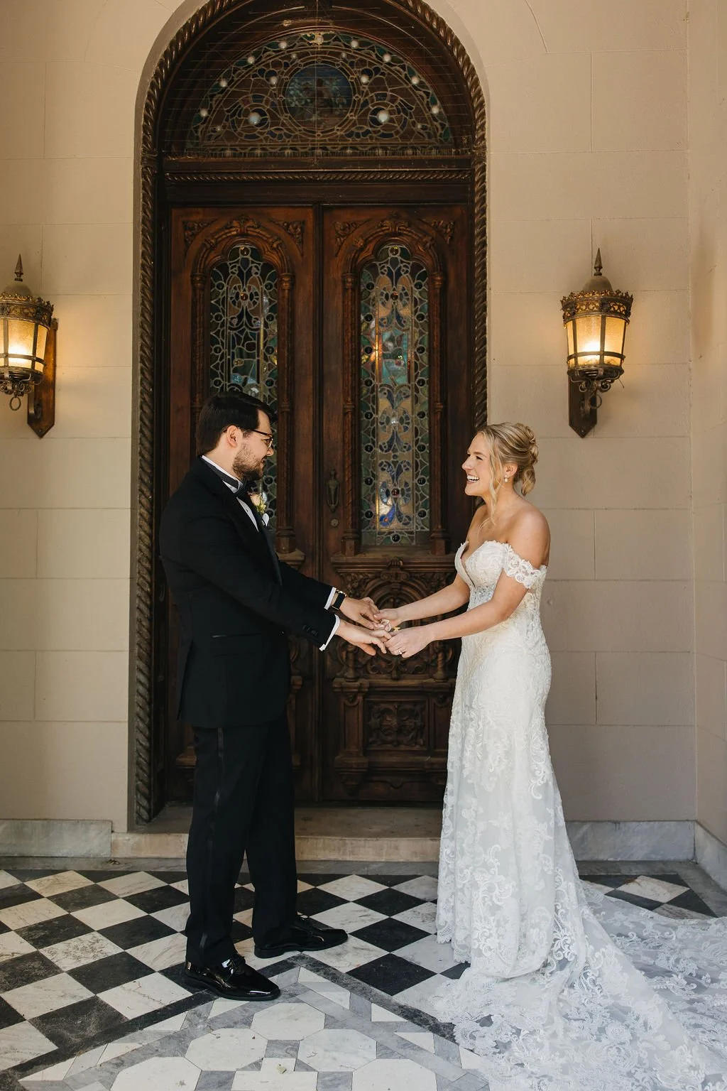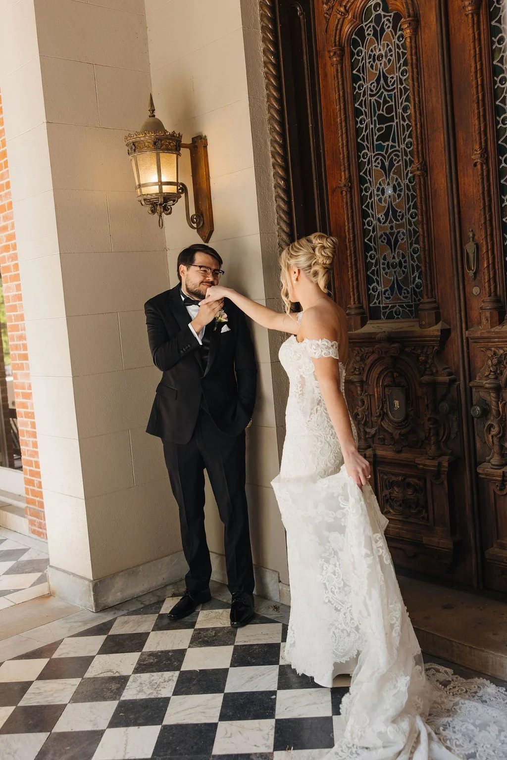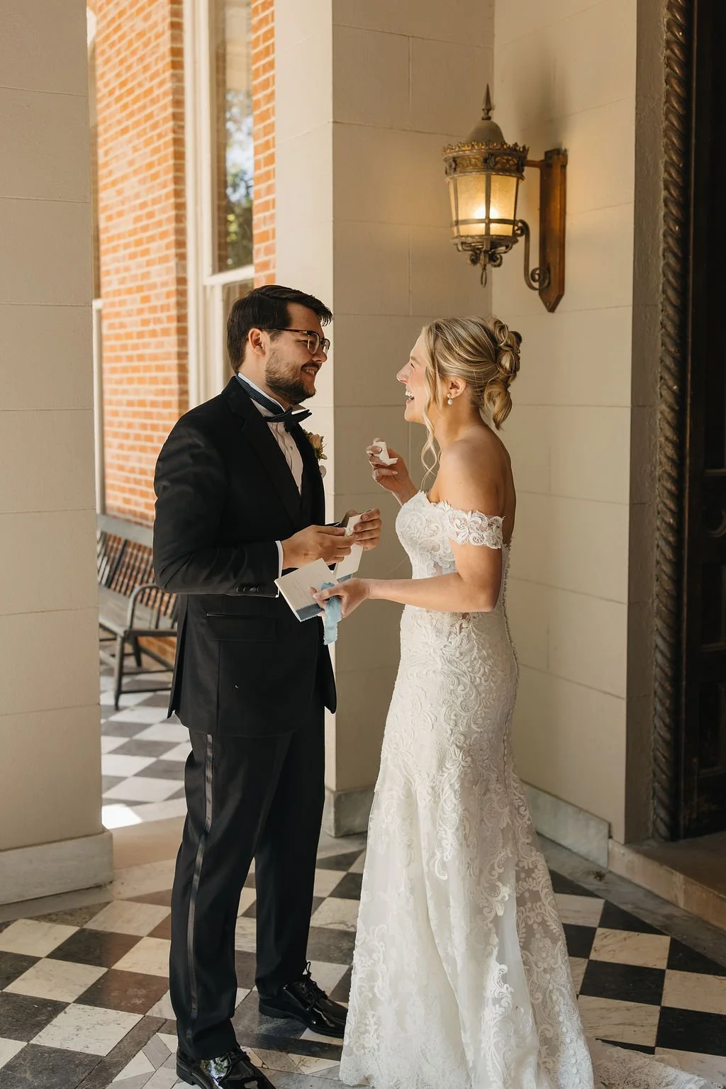 Nicole and Dalton shared a private first look of their own, a tender and quiet moment that let them soak it all in together before the whirlwind of the day continued. Their outdoor ceremony on the lawn felt peaceful and timeless, with the grand house as the backdrop and the trees swaying gently in the breeze. Their vows were heartfelt, and you could feel how connected they were as they said “I do” surrounded by their closest family and friends.