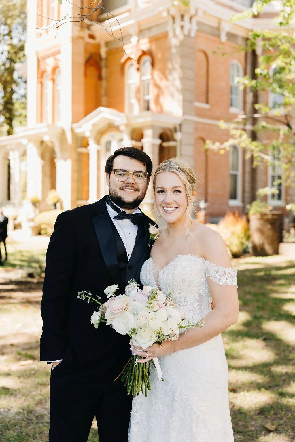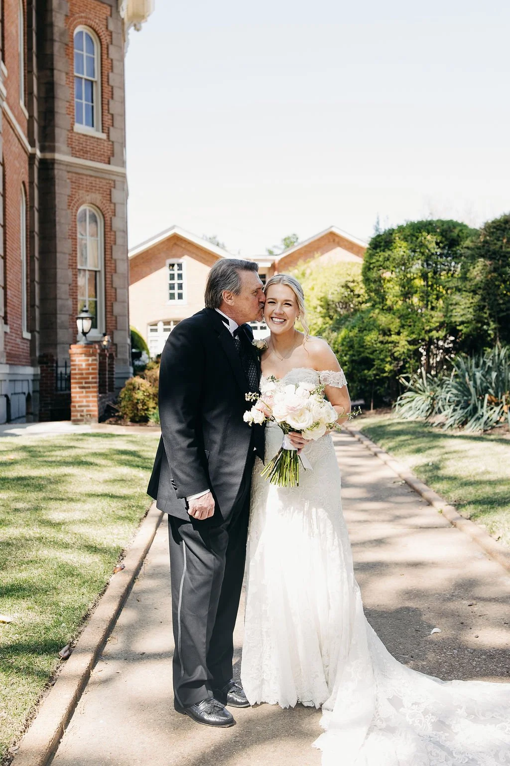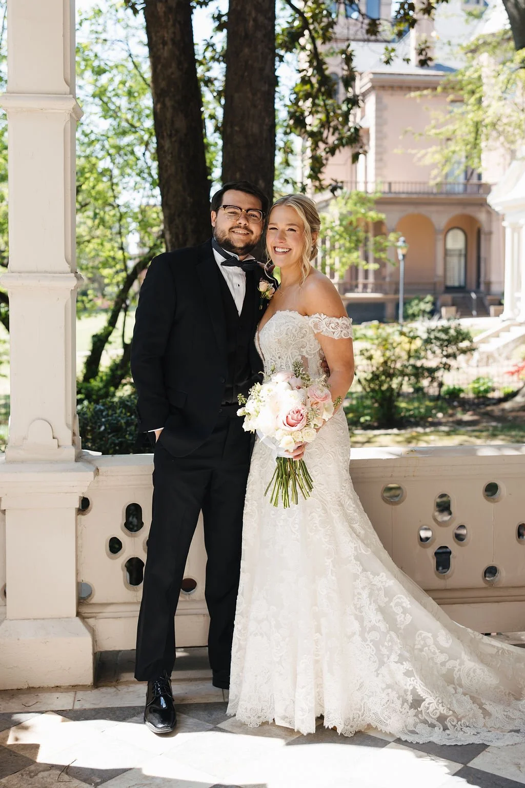 Dalton and Nicole’s wedding day at the historic Woodruff-Fontaine House was pure spring magic. The April sunshine and cool breeze made the day feel light and joyful, the perfect setting for their celebration. The morning was filled with laughter and anticipation as Nicole got ready with her bridesmaids inside the house, every moment brimming with excitement. Her first look with her dad was incredibly emotional, and there wasn’t a dry eye around.