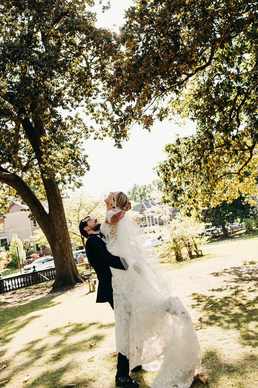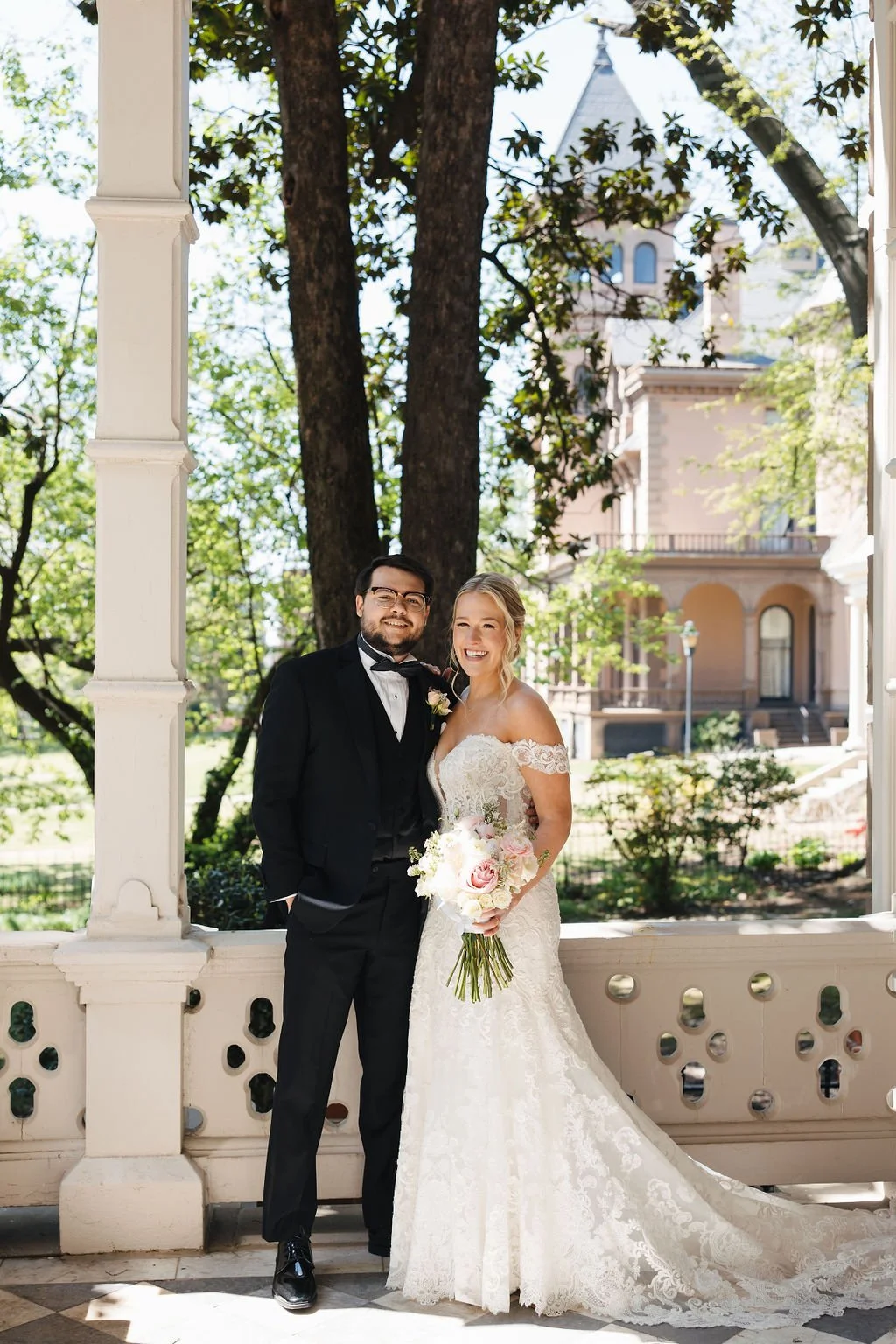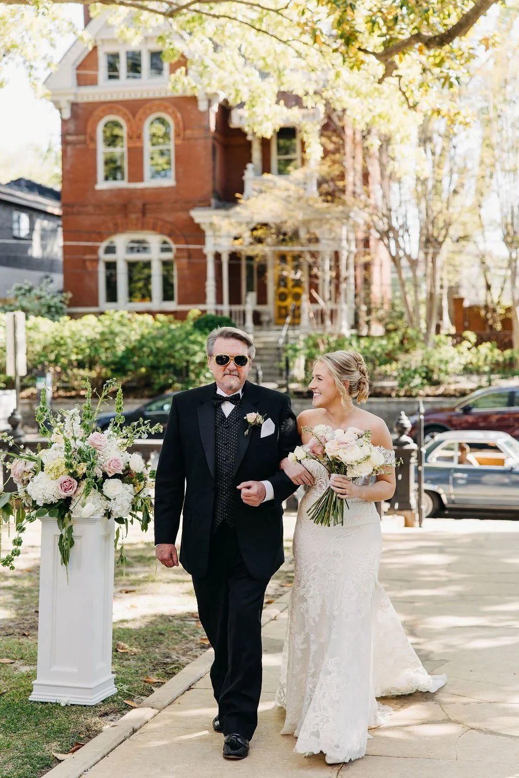 Dalton and Nicole’s wedding day at the historic Woodruff-Fontaine House was pure spring magic. The April sunshine and cool breeze made the day feel light and joyful, the perfect setting for their celebration. The morning was filled with laughter and anticipation as Nicole got ready with her bridesmaids inside the house, every moment brimming with excitement. Her first look with her dad was incredibly emotional, and there wasn’t a dry eye around.