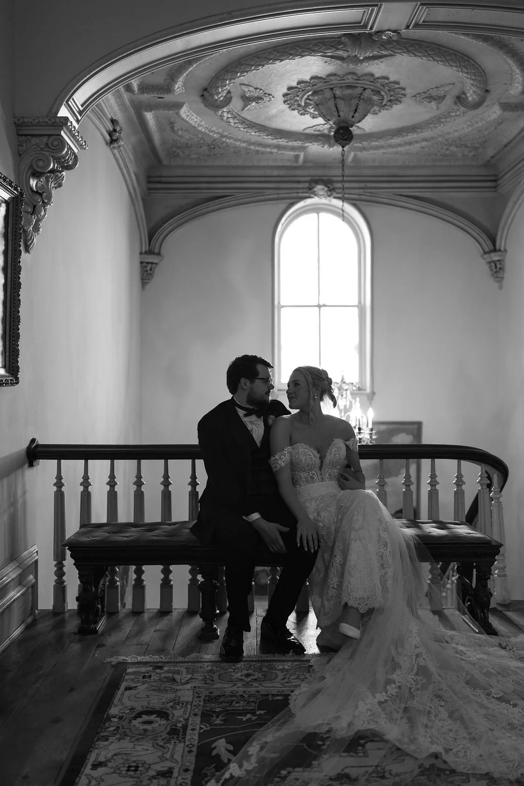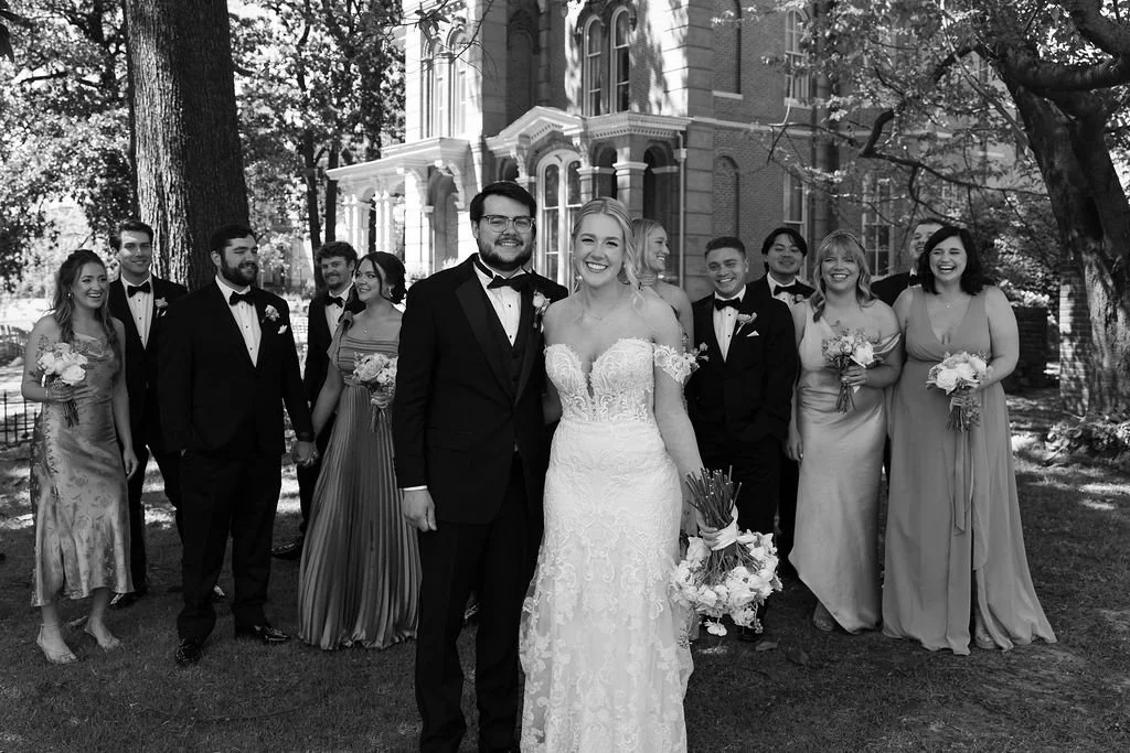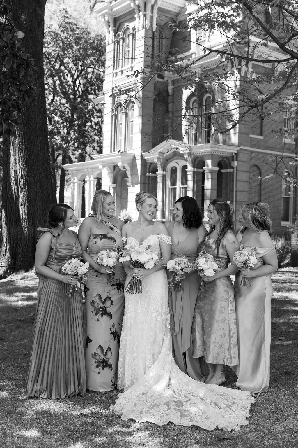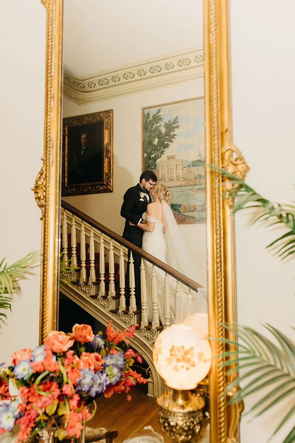 After the ceremony, the joy overflowed into portraits and celebrations. Their wedding party brought so much energy and laughter, creating candid, genuine moments that reflected the happiness of the day. Nicole and Dalton’s portraits around the property were stunning — from the wraparound porch to the sweeping staircase — each location captured their love so effortlessly.