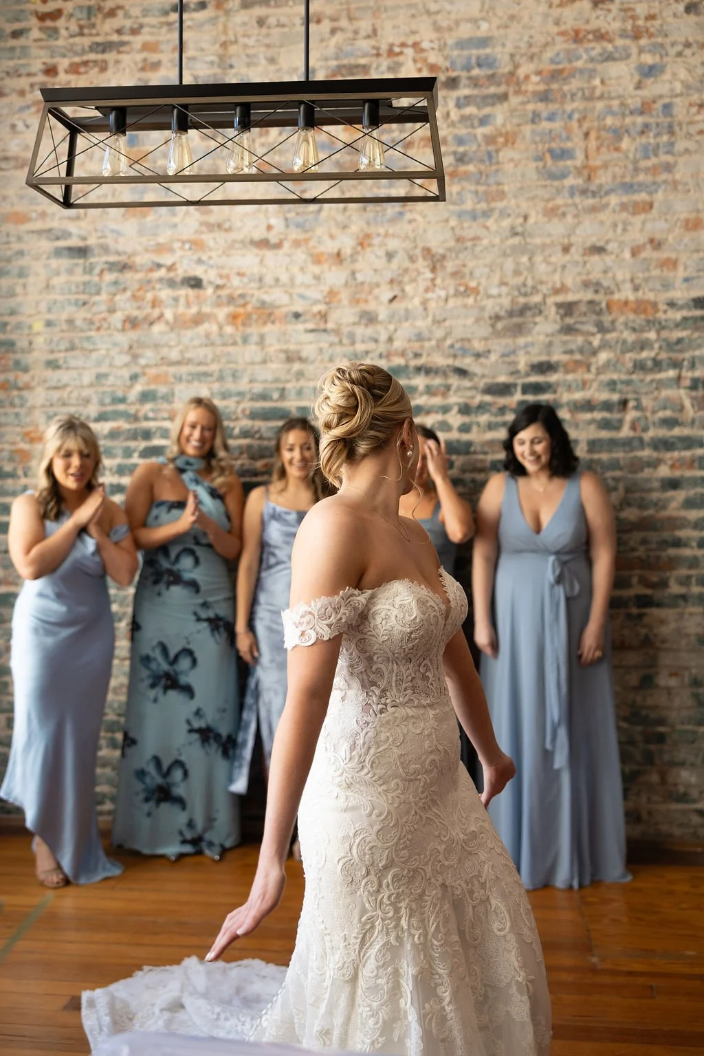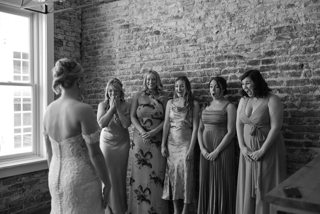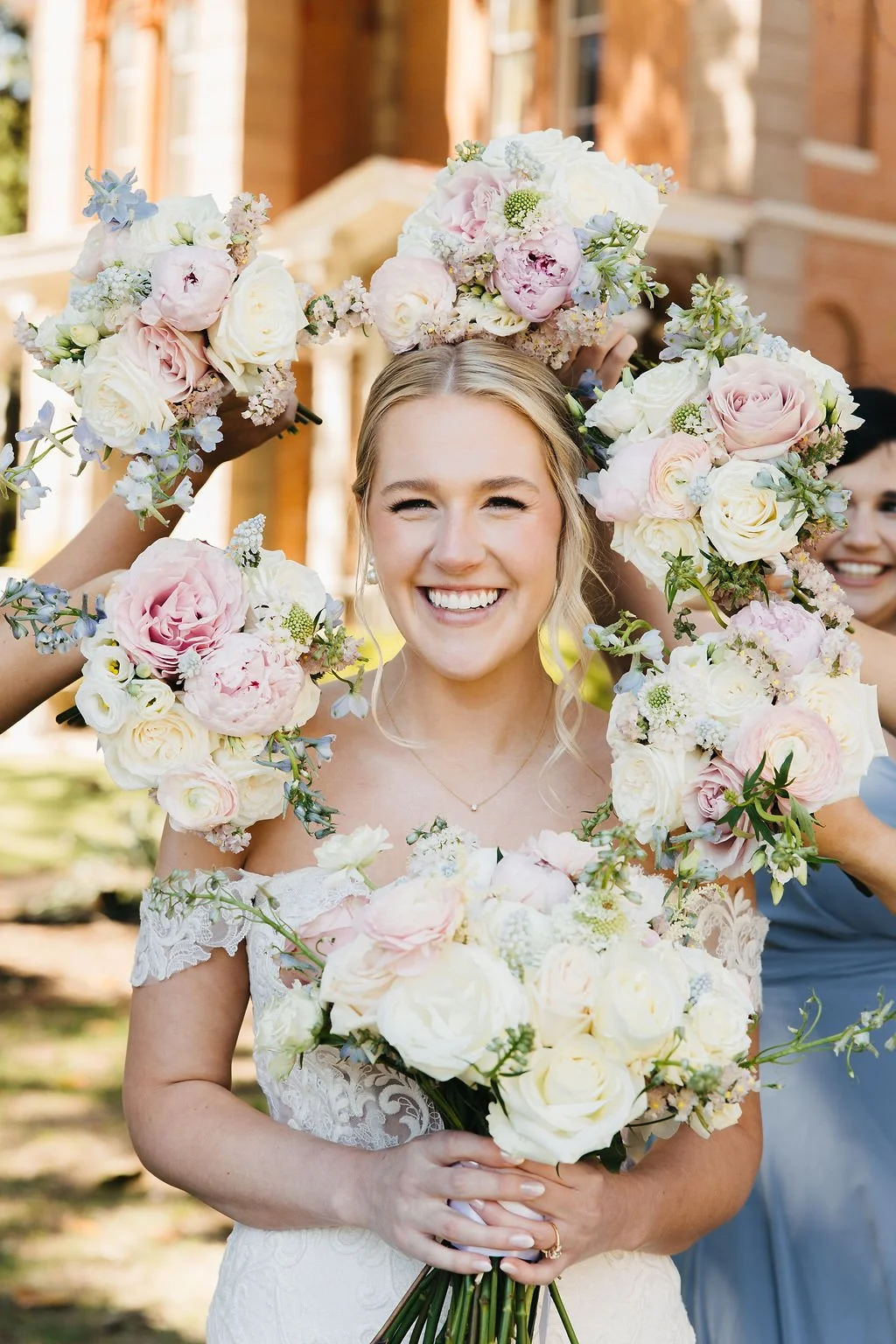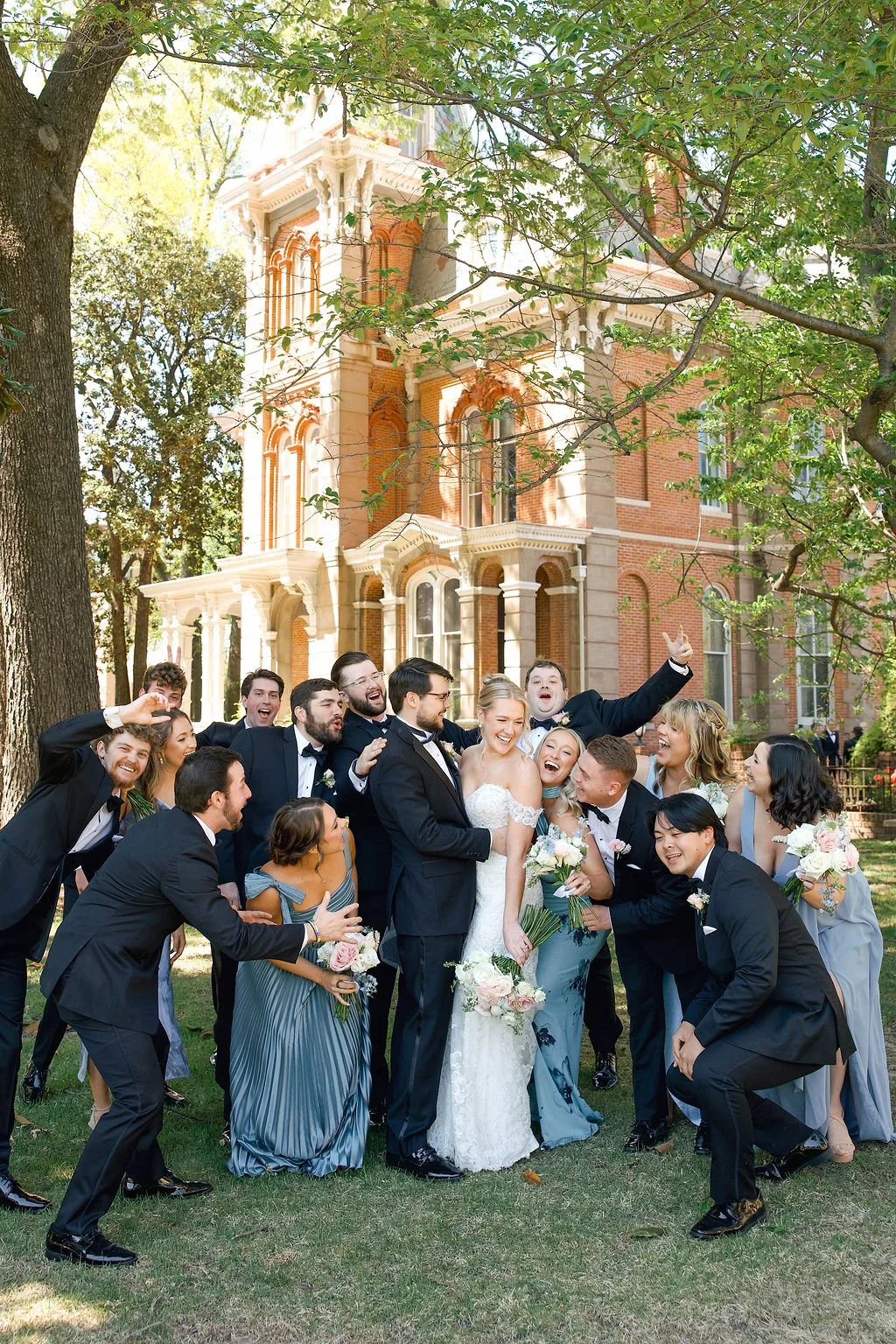 After the ceremony, the joy overflowed into portraits and celebrations. Their wedding party brought so much energy and laughter, creating candid, genuine moments that reflected the happiness of the day. Nicole and Dalton’s portraits around the property were stunning — from the wraparound porch to the sweeping staircase — each location captured their love so effortlessly.